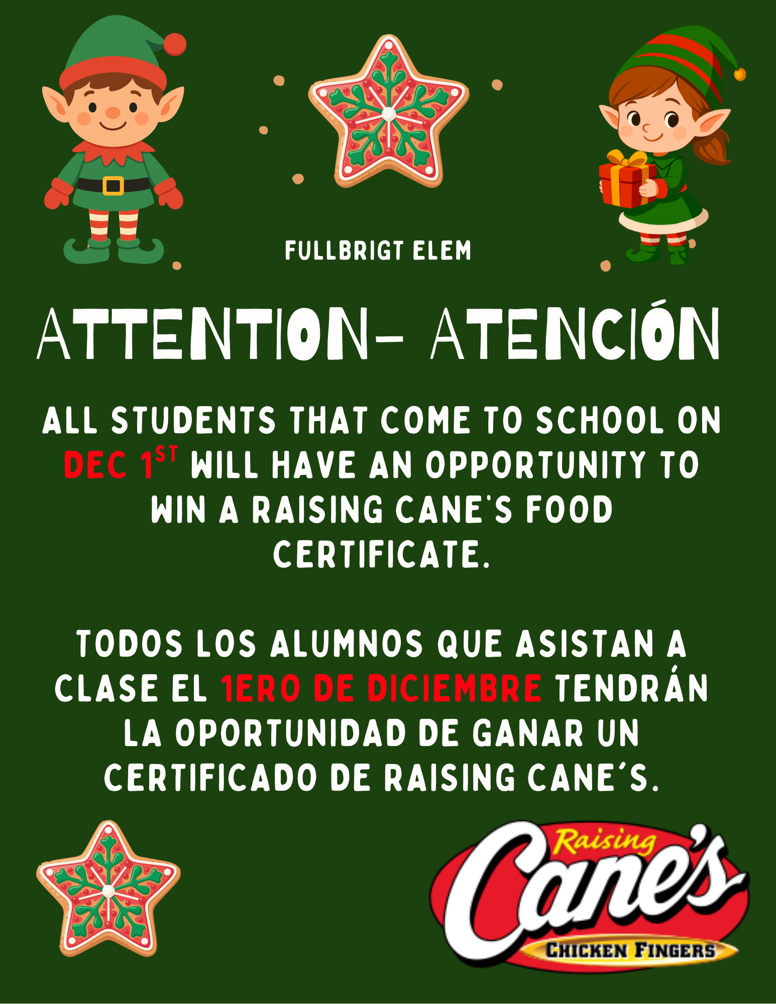 December 1 Attendance Challenge/1 de diciembre reto de asistencia