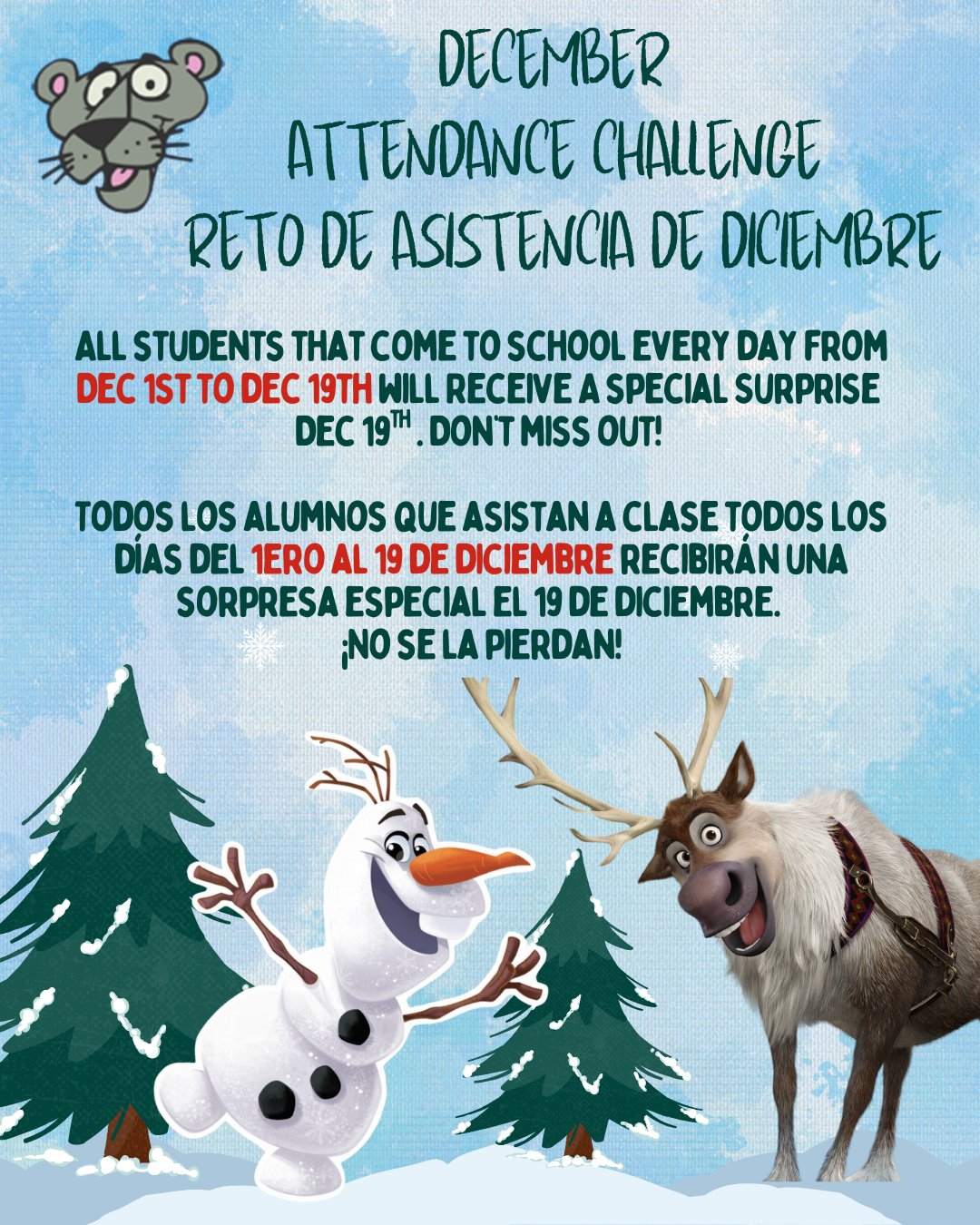 December Attendance Challenge/Reto de asistencia de diciembre