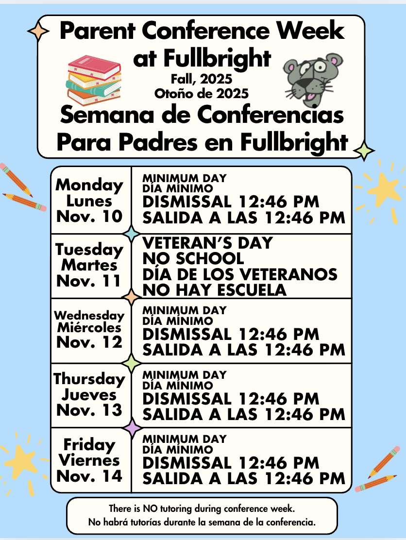 Parent Conference Week at Fullbright Fall, 2025 Otoño de 2025 Semana de Conferencias Para Padres en Fullbright Print