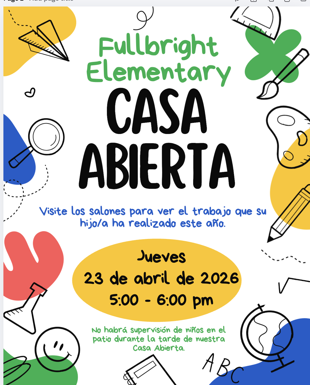 Open House/Casa Abierta Thursday, April 23, jueves 23 de abril